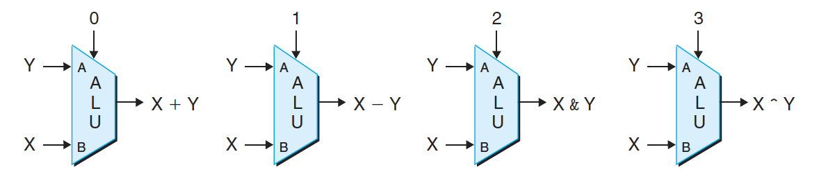 ALU로 알려져 있는 중요한 조합 회로는 추상화 수준으로 다이어그램으로 표현할 수 있다.