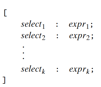 논리적으로 selection expression은 시퀀스에서 평가되고 1의 결과를 낳는 첫 번째 케이스가 선택된다.